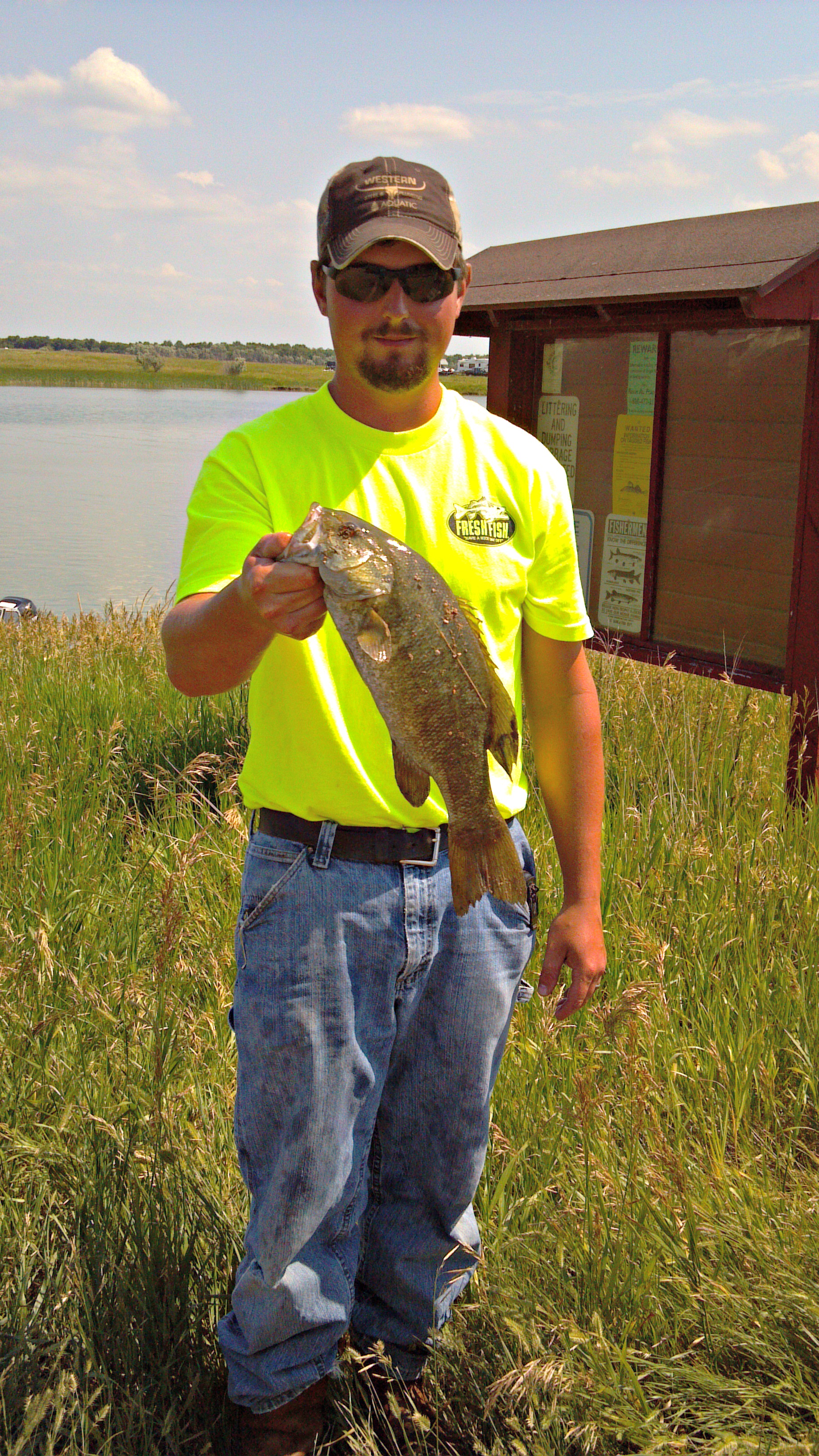It was not too bad the wind came up for a while in the morning the water was rough the skies were cloudy and rain appeared immanent but it held off and the water calmed down and fishing was good, The Wetzel’s Jeff and Janine were on a mission Audubon is there favorite lake and they fish there many times throughout the year and they did well!
