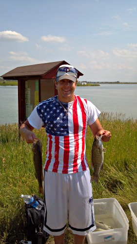 Everyone went back to the camps and some of us went to the bar in Cole harbor to have the gigantic prime rib steak! If you never had it, you are definitely missing out. Off to bed we all went after some fish stories and got up the next day to head over to Lake Sakakawea, the skies were blue and the wind was calm with heavy winds forecasted but not till later in the day. Mother nature was nice to us and held off the winds till the tourney was over, A good thing because Sakakawea is the biggest lake in ND and the second biggest man made reservoir in the USA so it can get very rough there fast.