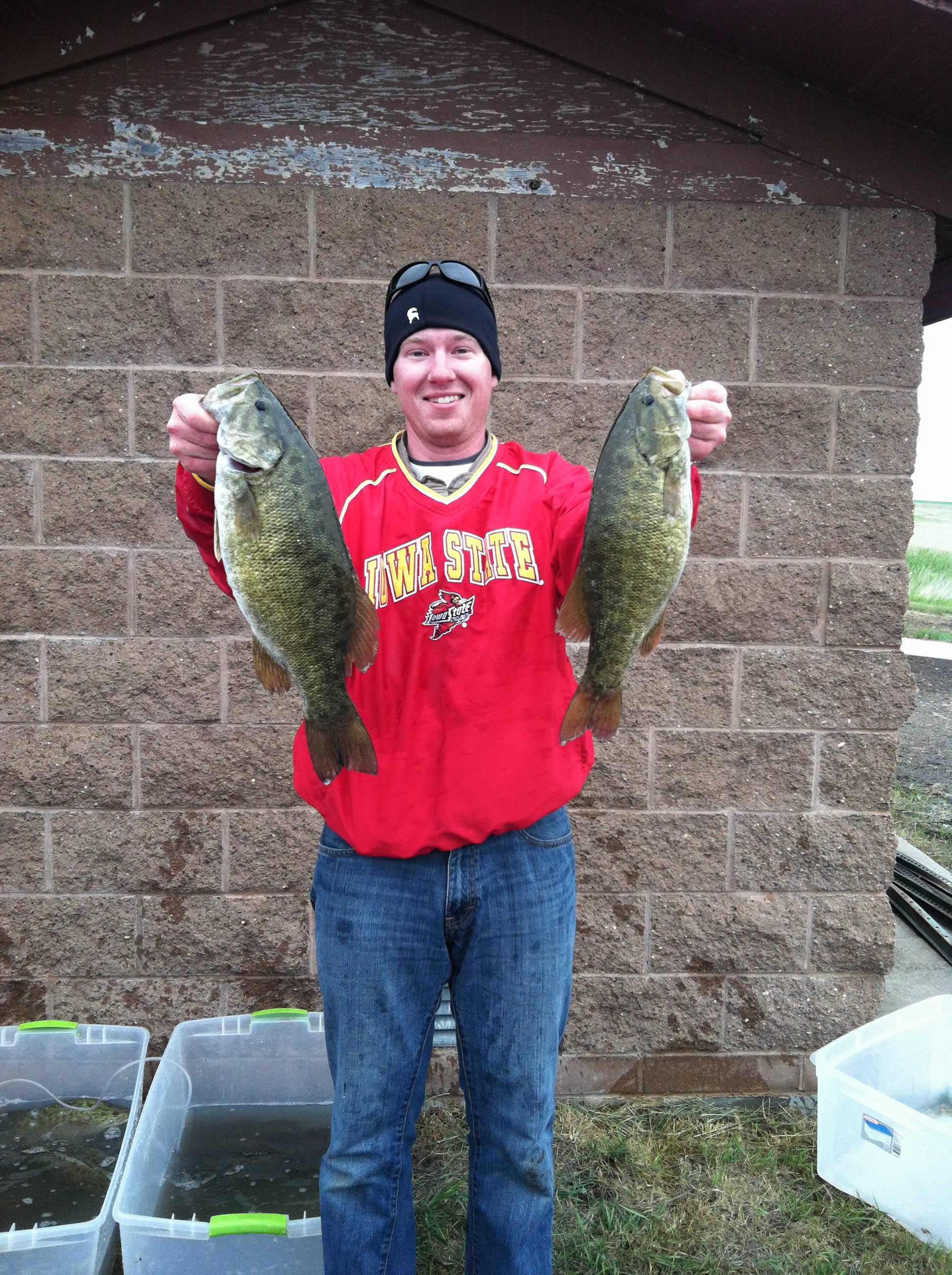 Well the Bass Bandits held their annual Ice Bowl tournament three months ago and it was a big success with such warm weather. Unfortunately on May 26th when the Bandits held their "Battle of the Canals" tournament on the McClusky water system Mother Nature reminded them who is in charge! It was a bitter cold and windy morning with temps in the mid 30's and light winds to start the launch off. Twenty three club members showed up for this year's event in hopes to catching those trophy smallmouths that lurk in McClusky chain of lakes. There were high chances of rain in the forecast for the tournament and thankfully that's where Mother Nature gave the Bandits a break and held the rain off until later that evening. Surprisingly the smallmouth bass were very cooperative and gave the Bandits a good showing!