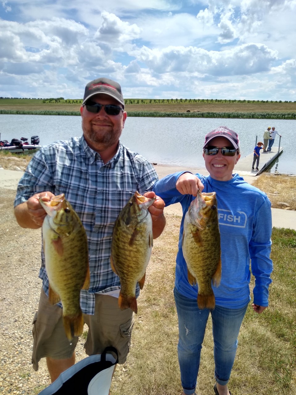 Ten boats arrived at the East Park Lake boat access ready to fish the 6th tournament of the Badlands Bass Bandits season. When boats launched the field split in half either going east towards New John’s and fishing the canals or going west fishing both East & West Park lakes. The weather was for a change rather pleasant with mild winds and lots of sunshine, which made it great for all the campers and recreational boaters out that day but made for a tough day to catch fish. As the day continued so did the boat traffic and canals were stirred up and water clarity was impeded.