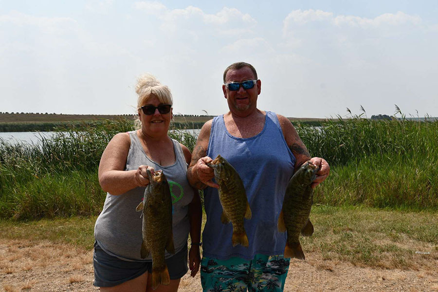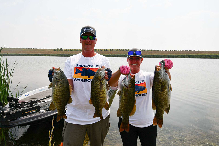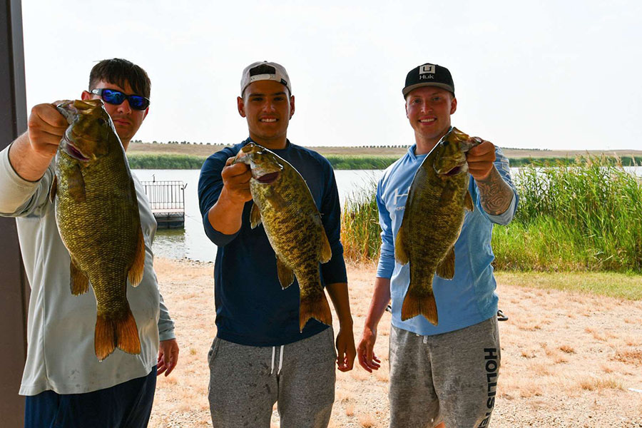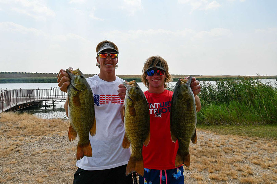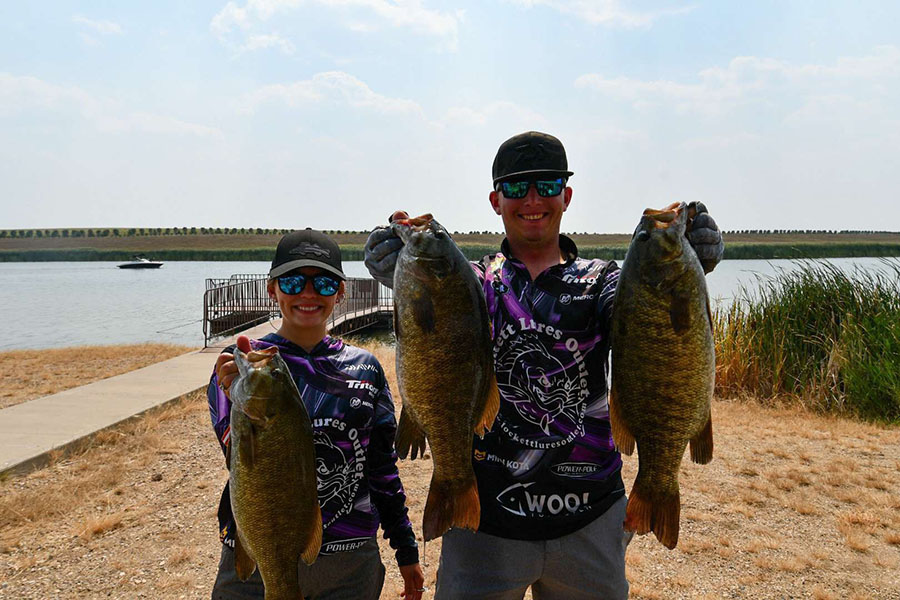 As boats started to congregate back for weigh in, anglers success sounded all over the board; from some having a great day of fishing to others struggling to fill their limit. This fishery can be tough for some but to those who figure it out, they are always rewarded. This tournament was no different and those that dialed in a pattern came in on top. In first place was Team Blomberg with a commanding 12.54 pounds limit, which is the third biggest limit in bandits’ history, and a 1.5-pound lead over second! In second place was the dynamic trio from Minot; Drew Morgan, Ty Gray, and Felipe Ferreira who hauled in a 11.06-pound bag with a 4.56-pound kicker which won them big bass honors for the tournament. And in third place, nipping right at their tails was team Keepers (Mike & Angela Messall) with a 10.69-pound bag, these two have been fishing hard this year and their success keeps improving every tournament!